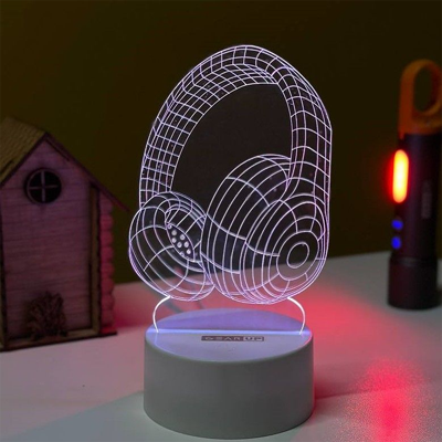 GearUP Acrylic Multicolor Night Lamp (Headphone – White) | Decorative Night Light for Music Lovers